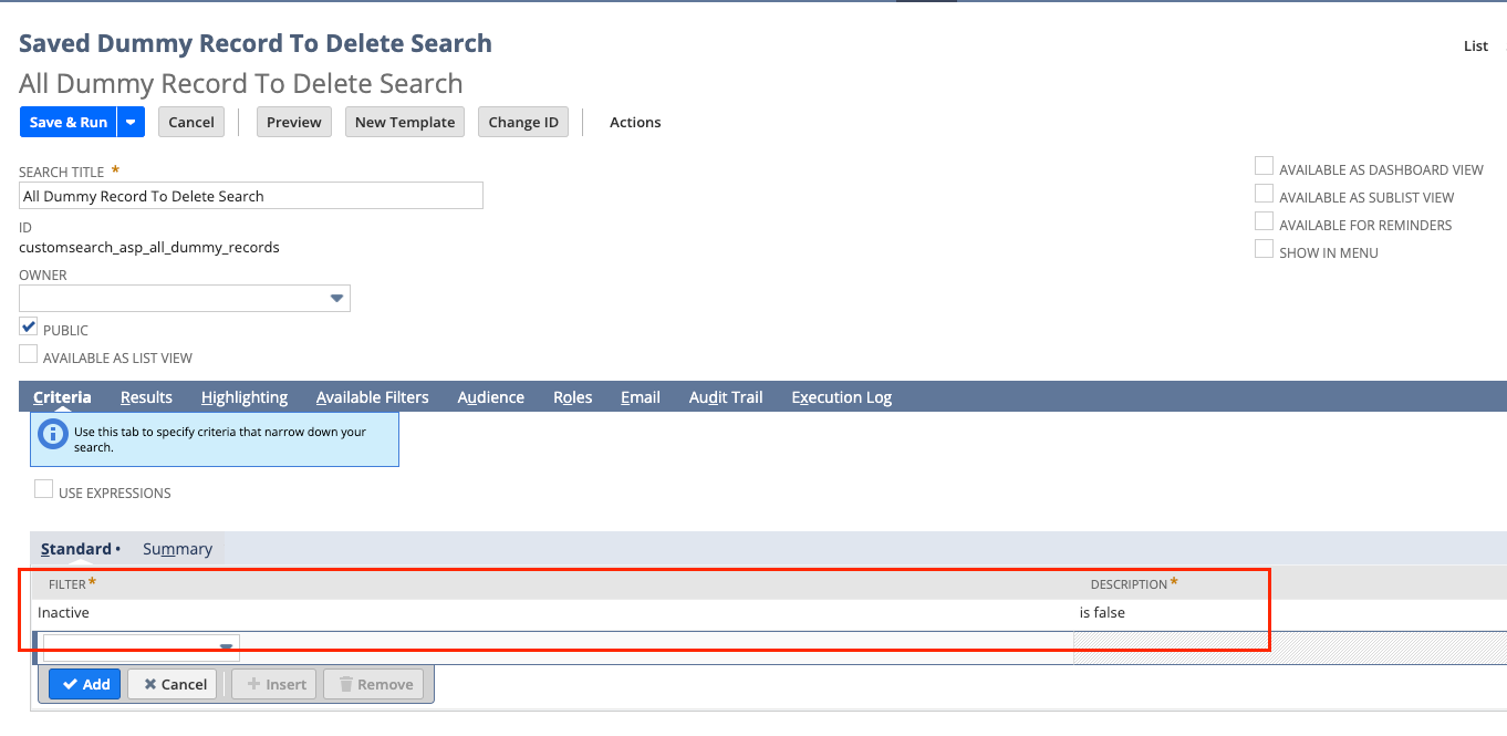 3. Create a saved search for the records to be deleted (ensure there is at least one criteria).