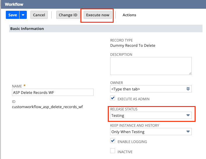 - Schedule or execute it immediately. To execute immediately, ensure Release Status is “Testing” and click “Execute Now”.