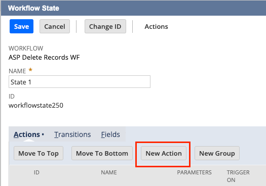 - Select the state and click “New Action”.